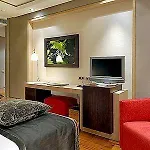 Las habitaciones del Hotel Vincci Frontaura cuentan con un escritorio, además de ventanas insonorizadas para mayor comodidad de los huéspedes. Las habitaciones están equipadas con una caja fuerte personal; además, ofrecen TV de pantalla plana con canales vía satélite y minibar y servicio de tetera/cafetera para el autoservicio. Disponen de una ducha, así como de instalaciones como secadores de pelo y toallas.